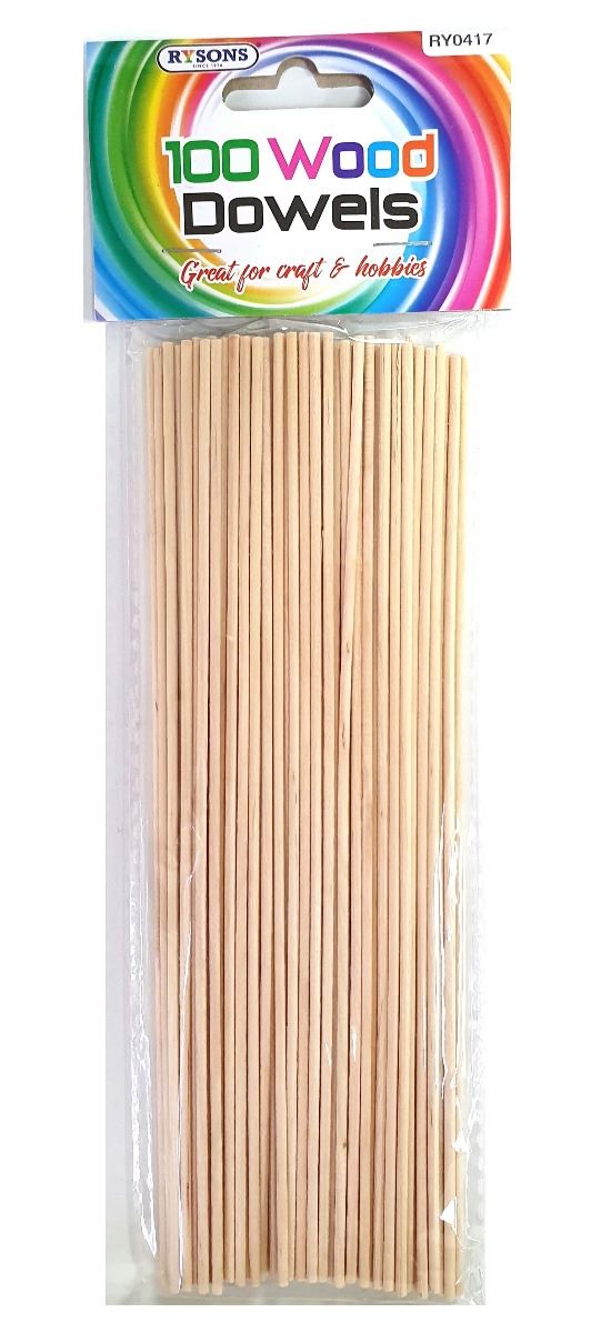Ideal for large craft projects, model building, and DIY repairs, Rysons 100Pc Assorted Wood Dowels offer a variety of sizes for all your creative needs.