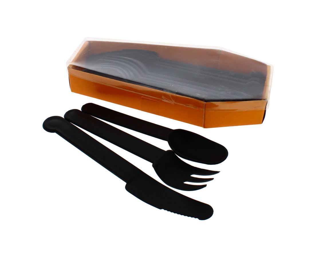Dine in spooky style with this 12-piece cutlery set, presented in a fun coffin-shaped box.