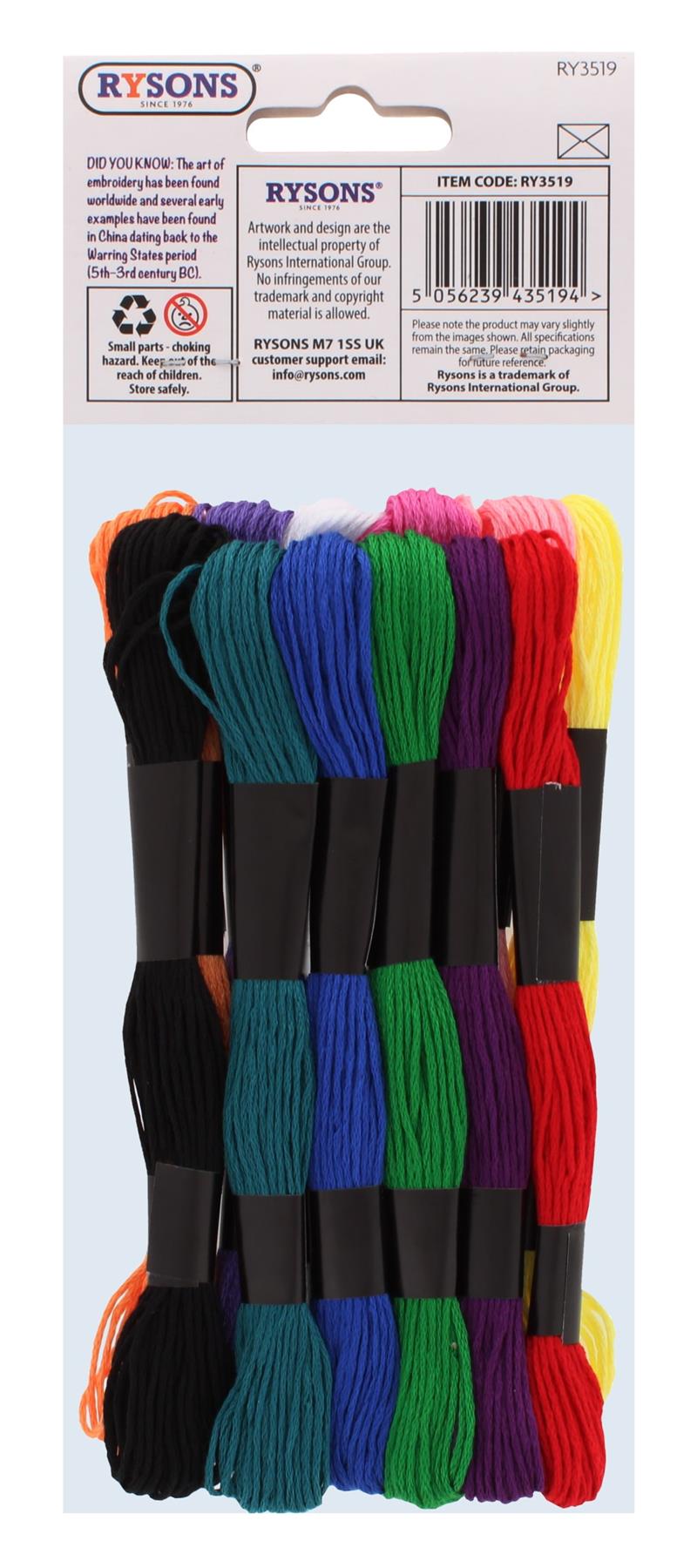 Vibrant and smooth embroidery threads in assorted colours for cross-stitch, embroidery, and crafts.