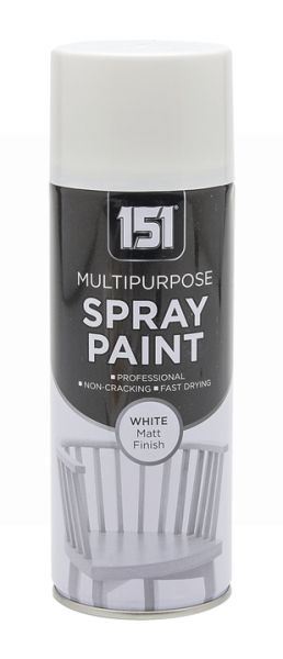 White matt spray paint ideal for furniture, wood, and metal, providing a flat, professional finish.