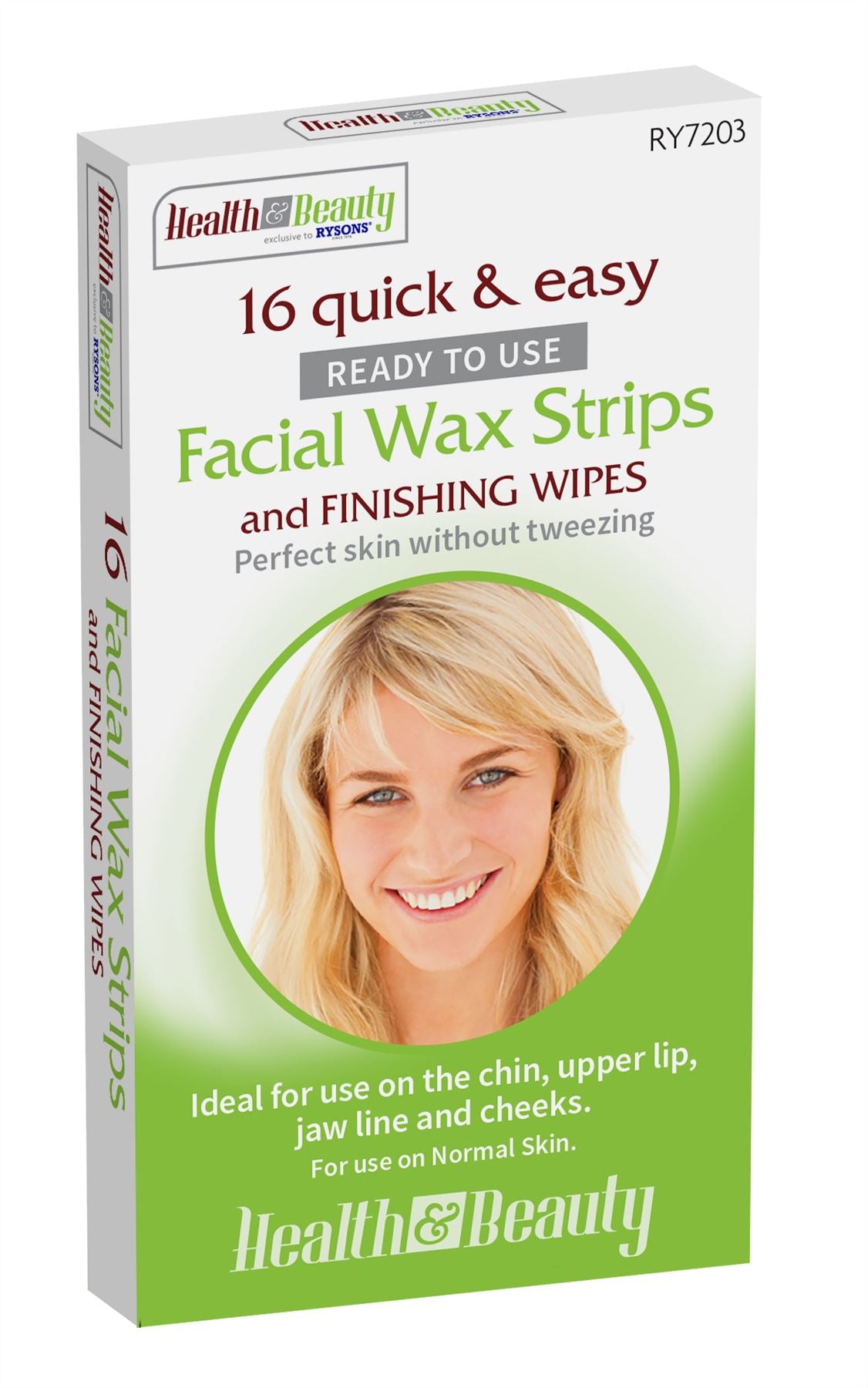Rysons 16 Facial Wax Strips & Finishing Wipes