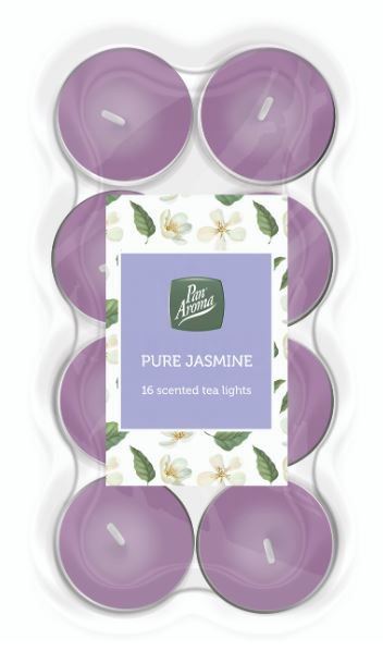 Enjoy a soothing and floral fragrance with these jasmine-scented coloured tea lights. Great for mood lighting.