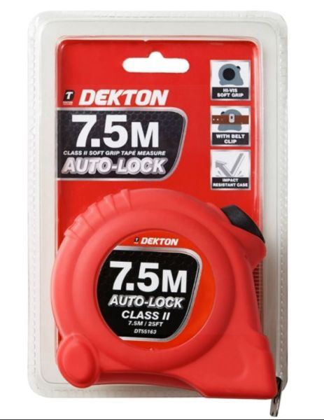 Measure accurately with this 7.5m Autolock Tape Measure. Soft grip handle and belt clip ensure comfort and convenience for all measuring tasks.