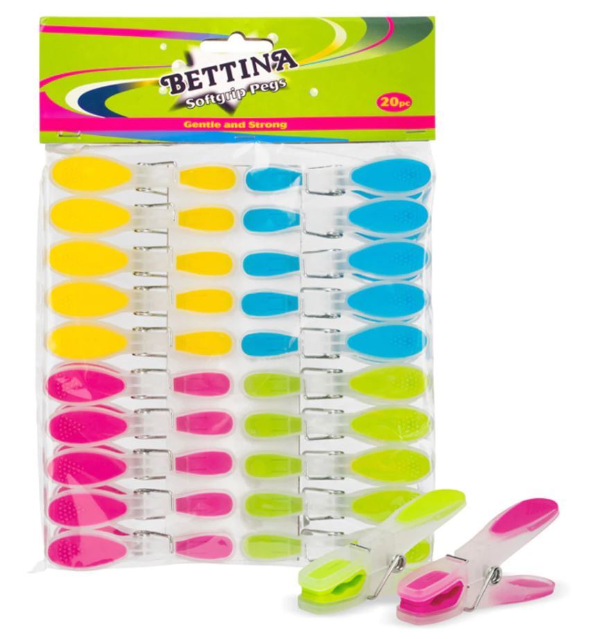 20PK ASSORTED BETTINA SOFT GRIP PLASTIC PEG