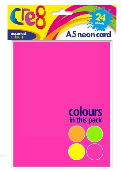 Brighten up your projects with this pack of 24 neon A5 cards in bold, vibrant colours.