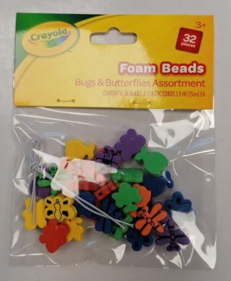 32PK ASSORTED CRAYOLA FOAM BEADS BUGS/BUTTERFLIES
