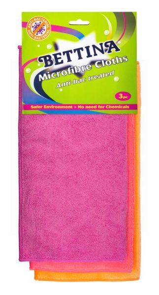 3PK ASSORTED BETTINA ANTI-BACTERIAL MICROFIBRE CLOTHS