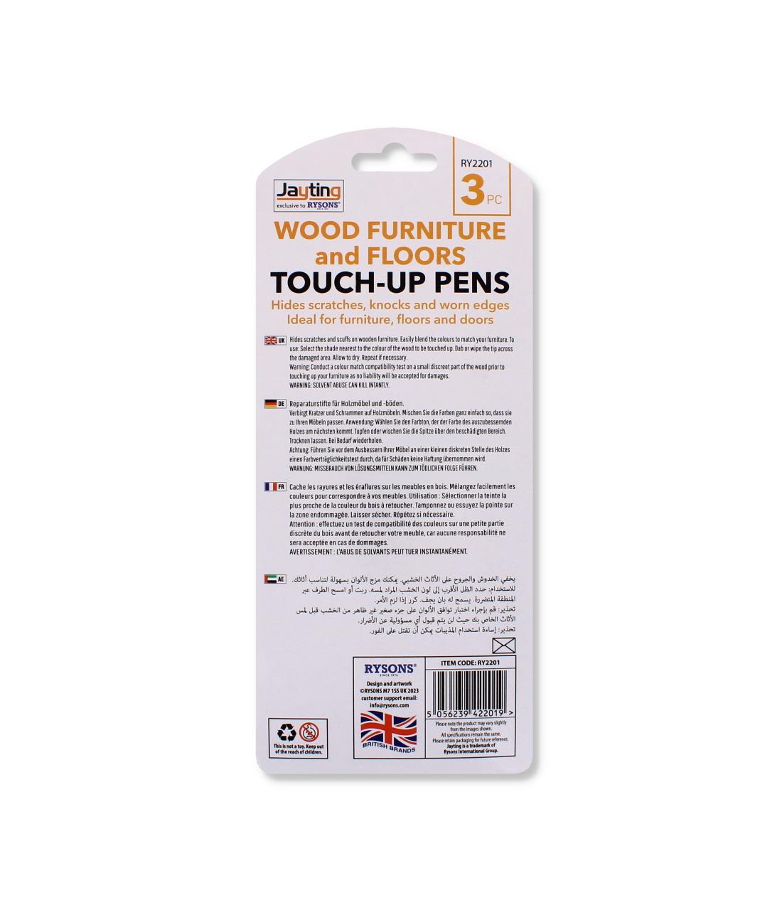 Conceal minor damages and scratches on wood surfaces with this set of 3 touch-up pens in assorted wood tones.