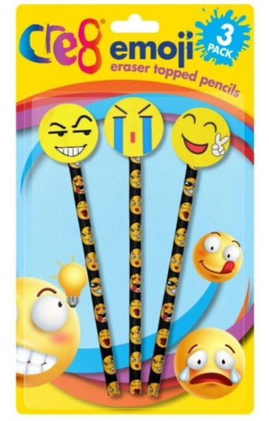 3PK CRE8 Emoji Eraser Top Pencils Set