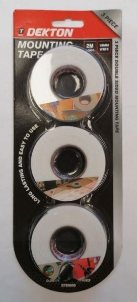 3PK DEKTON DOUBLE SIDED MOUNTING TAPE 2M X 18MM
