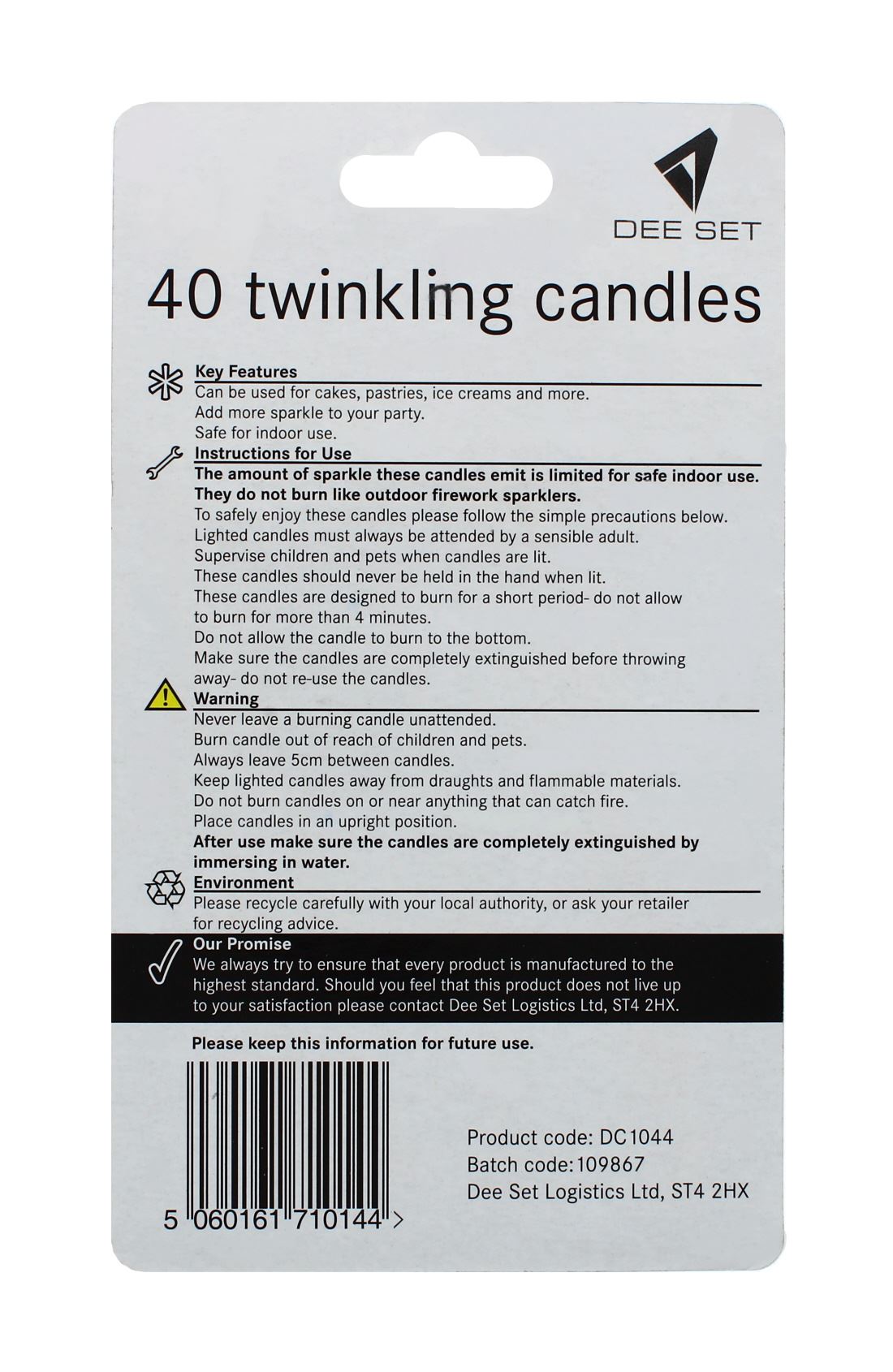 Make birthdays sparkle with this set of 40 twinkling effect candles.