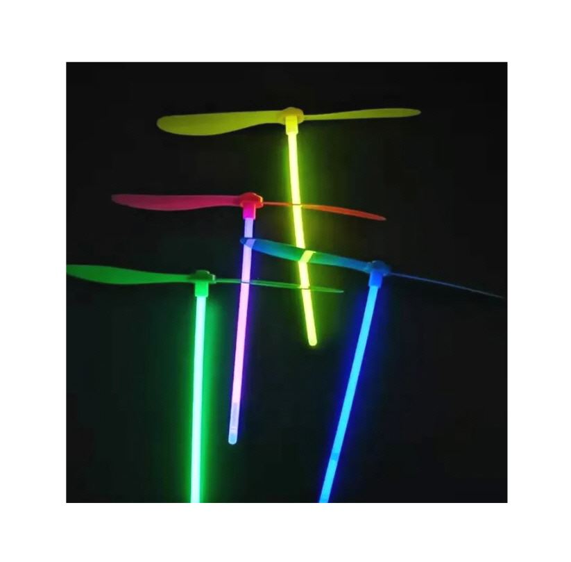 Fun light-up toy sticks with spinning propellers that glow in the dark.