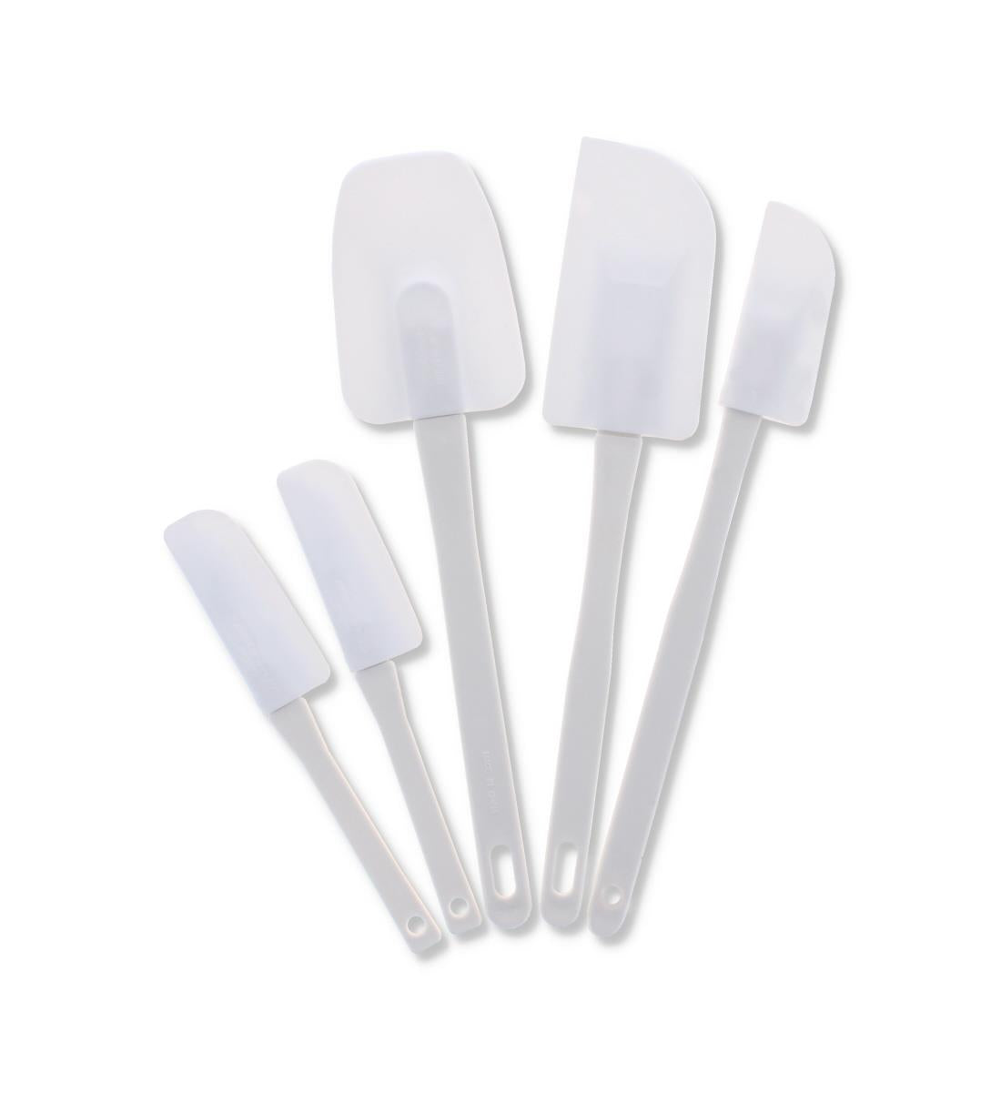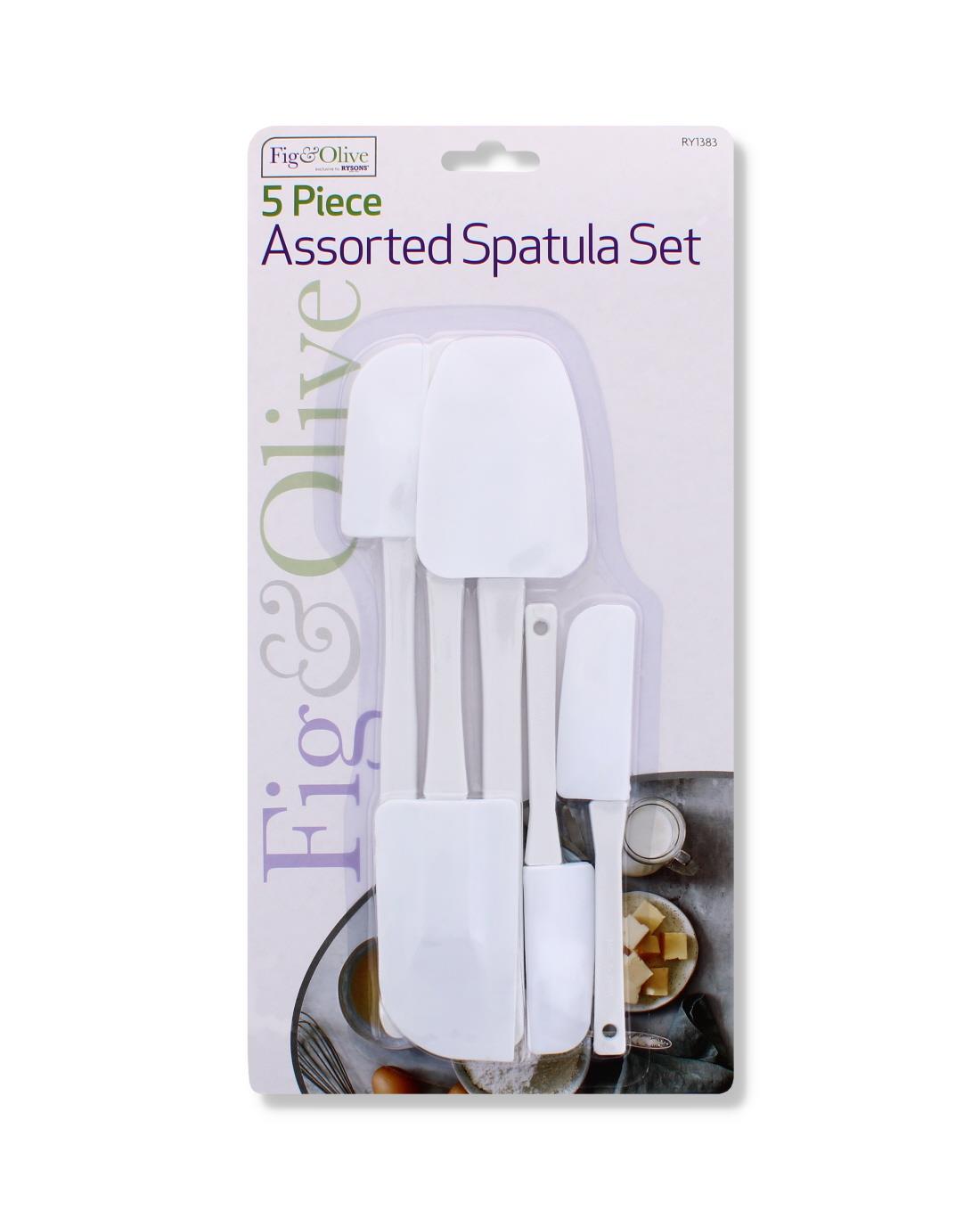 Versatile set of 5 assorted spatulas for cooking, baking, and serving.