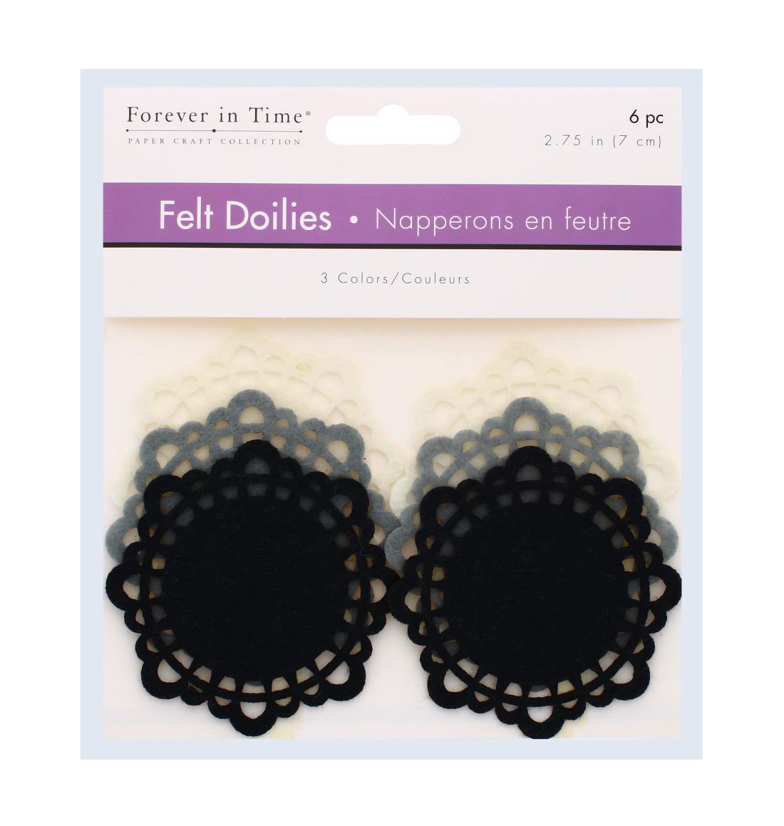 Classic felt doilies in assorted colours, great for table décor and crafts.