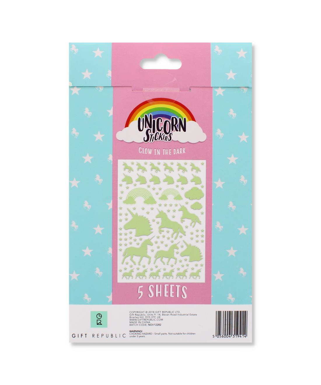 Magical unicorn sticker set with glow-in-the-dark designs.