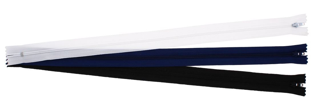 A mixed pack of 6 strong and durable zips, ideal for clothing repairs, DIY projects, and tailoring.