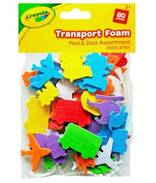 80PC CRAYOLA ASSORTED PEEL & STICK TRANSPORT FOAM