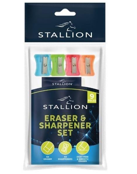 Stay prepared for school or office with the Stallion Eraser Sharpener Set. Handy 9-pack includes assorted colours for everyday use.
