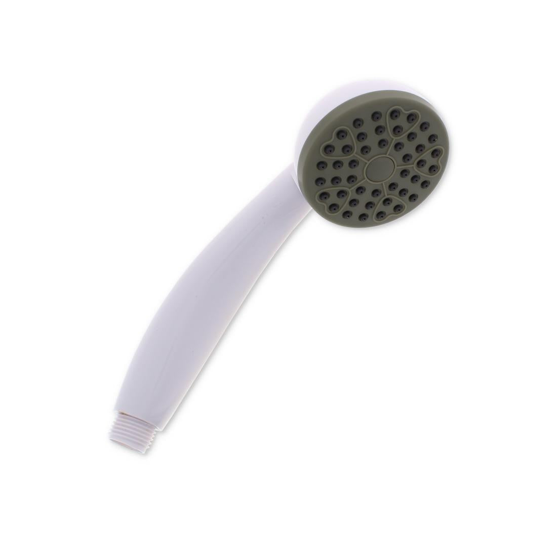 Classic white single-function shower head, perfect for simple bathroom setups.