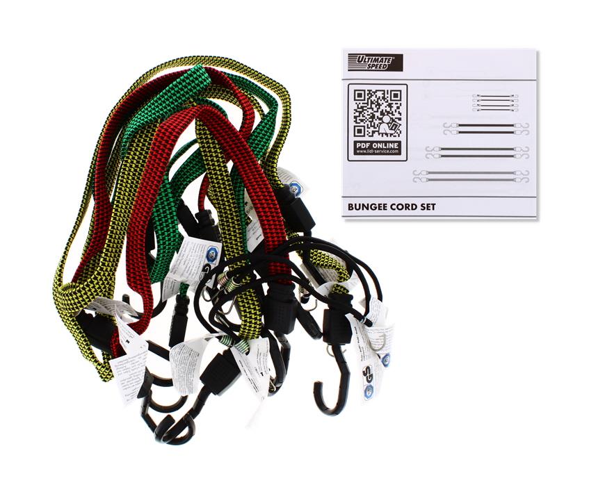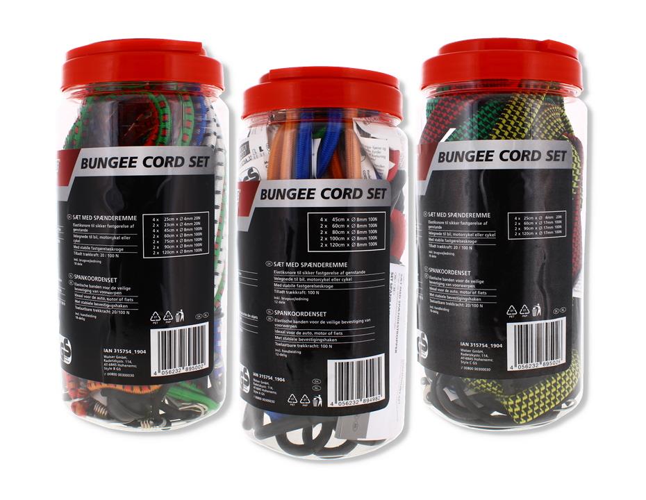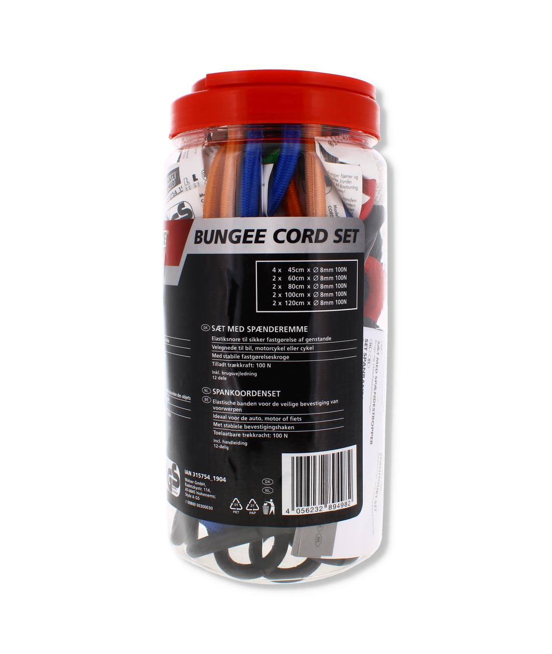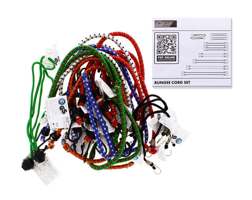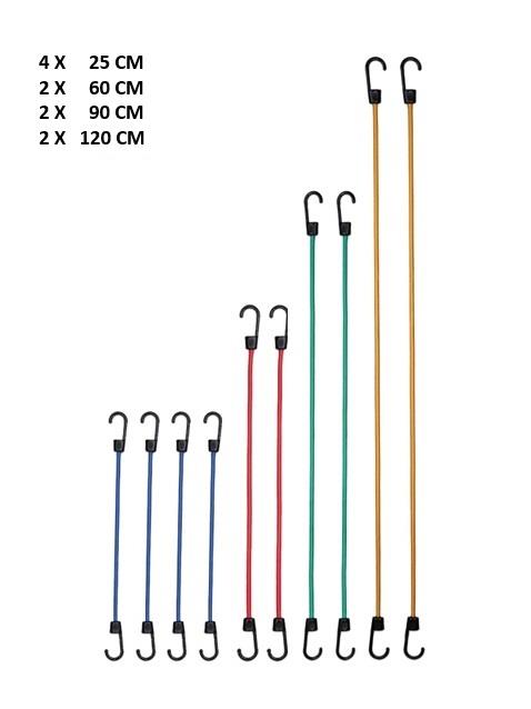 Strong and flexible bungee cords with hooks, perfect for securing loads and general use.
