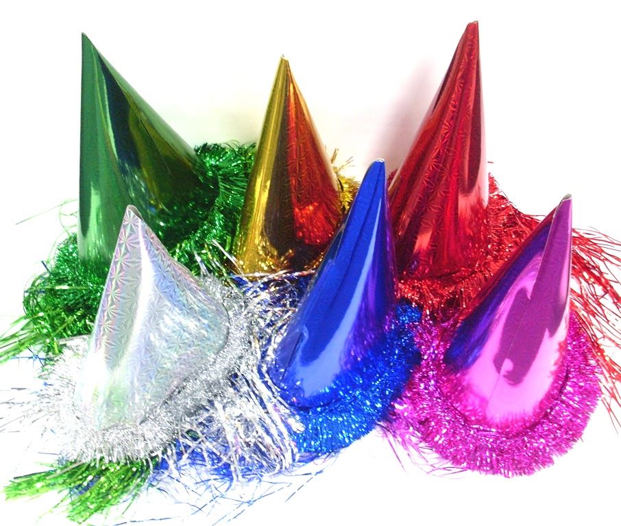 Add sparkle to any party with these assorted tinsel dome hats.