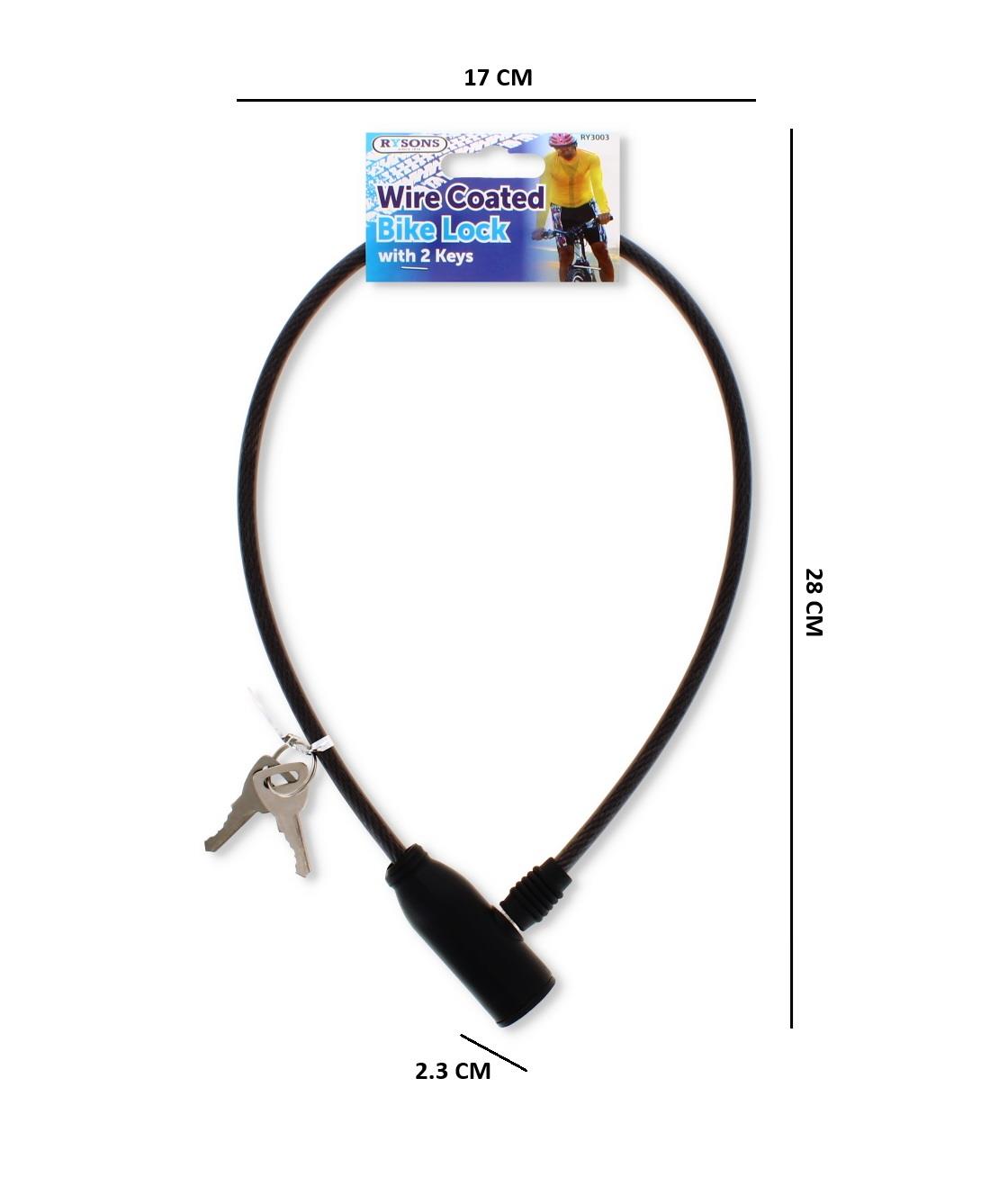 A strong and durable bike lock featuring a coated steel wire cable, designed to keep your bicycle secure. Comes with 2 keys for convenience.