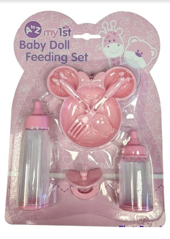 Interactive feeding set for dolls, perfect for role-play and nurturing play.