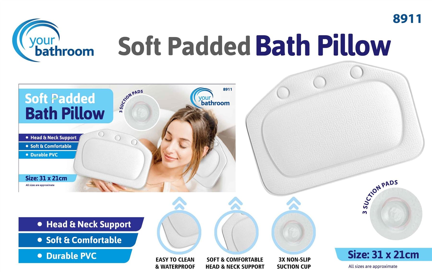 Soft and supportive pillow designed for comfort during long, relaxing baths.
