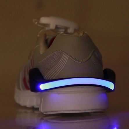 A lightweight, clip-on LED shoe light designed for visibility and safety when cycling, running, or walking at night.