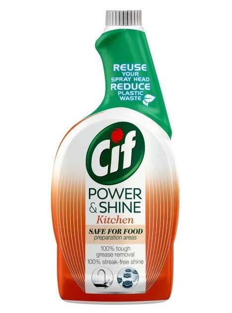 Cif Power & Shine Kitchen Cleaner Refill cuts through tough grease and grime, leaving kitchen surfaces sparkling clean and fresh.