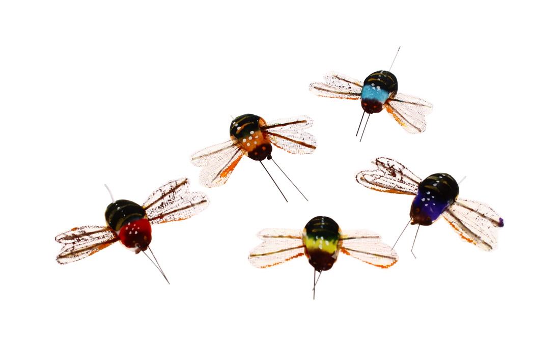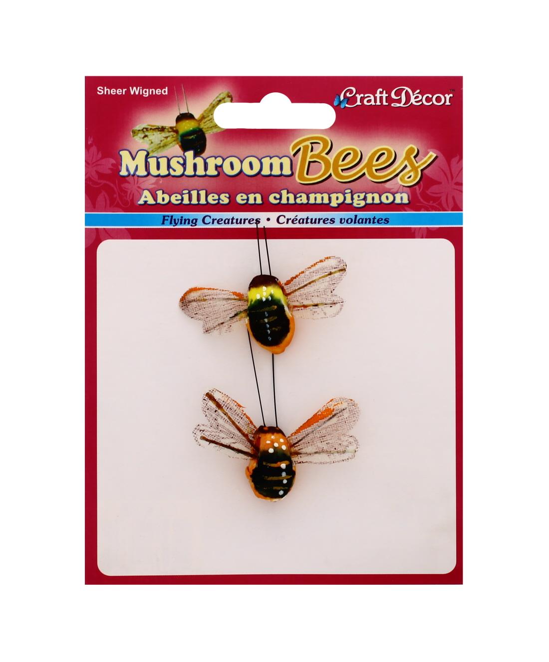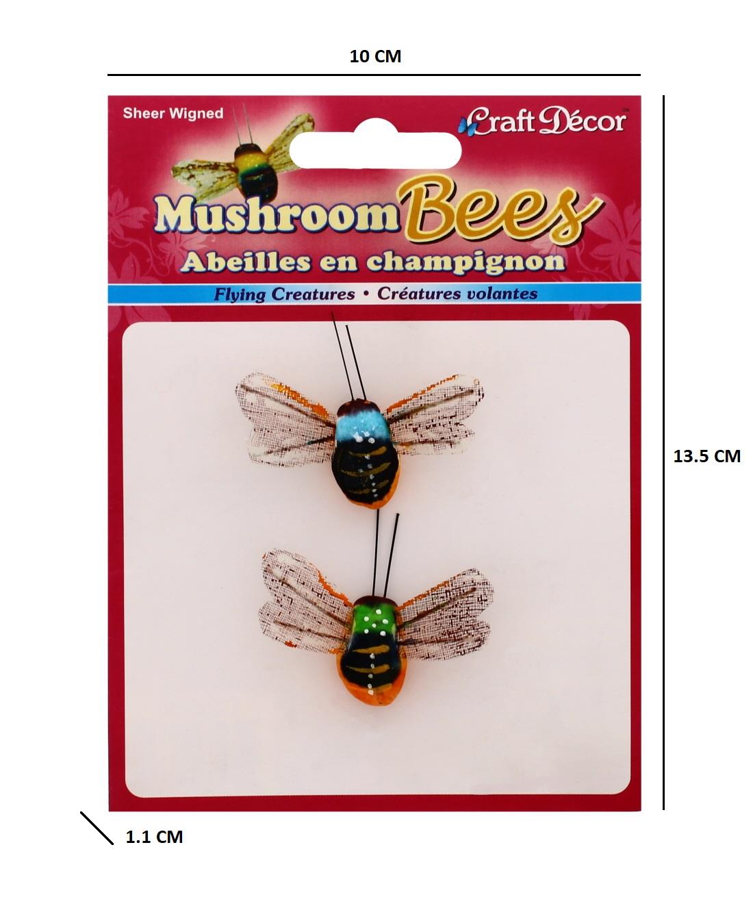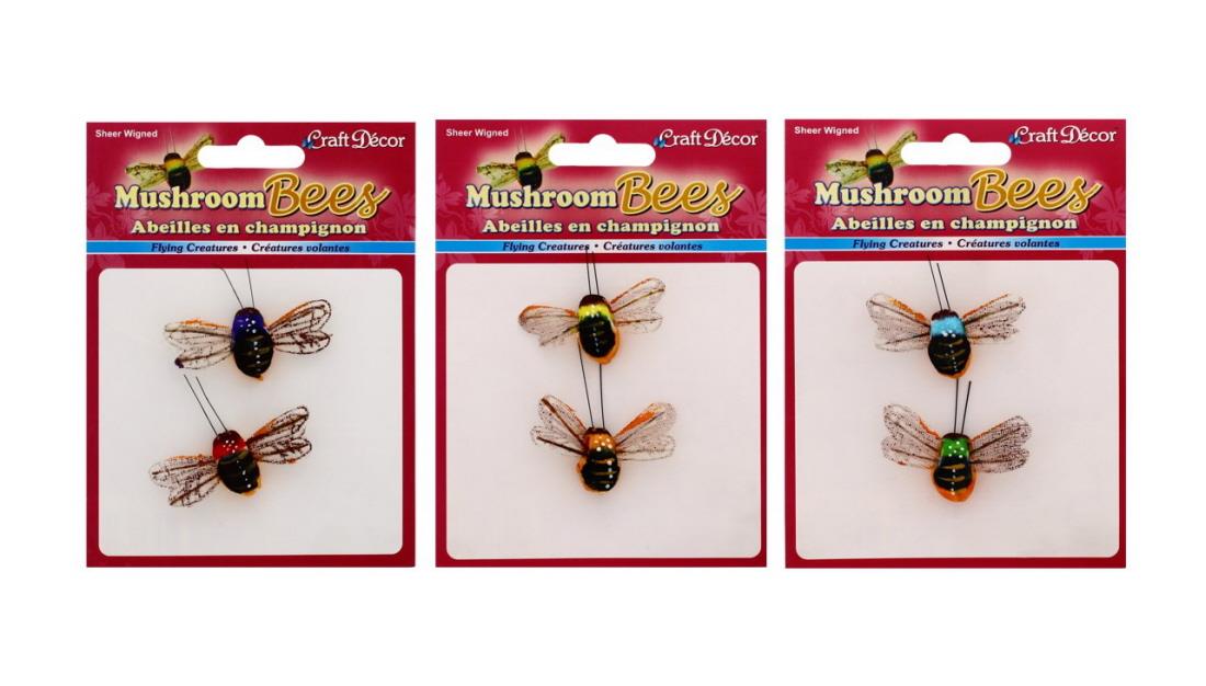 Miniature mushroom and bee embellishments to add a whimsical touch to crafts.