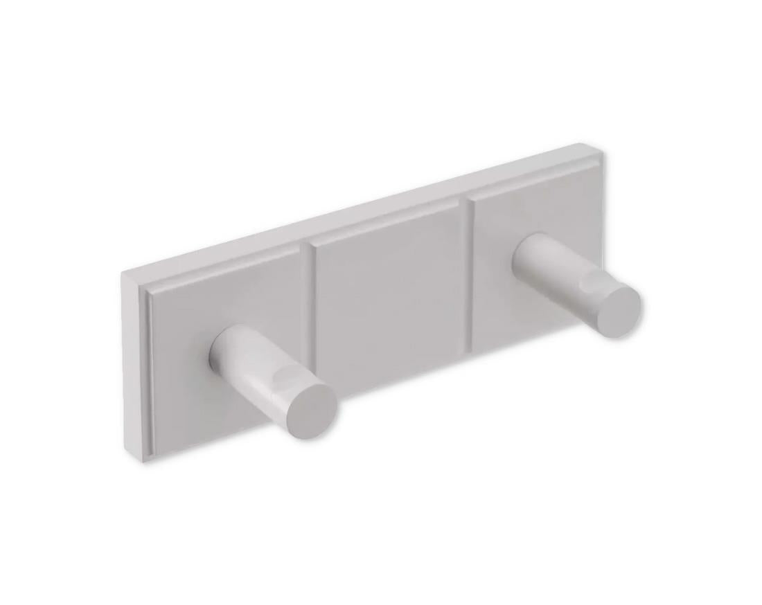 A practical double robe hook with a clean white finish, perfect for hanging robes, towels, or clothing. Designed to be compact and functional while matching any bathroom décor.