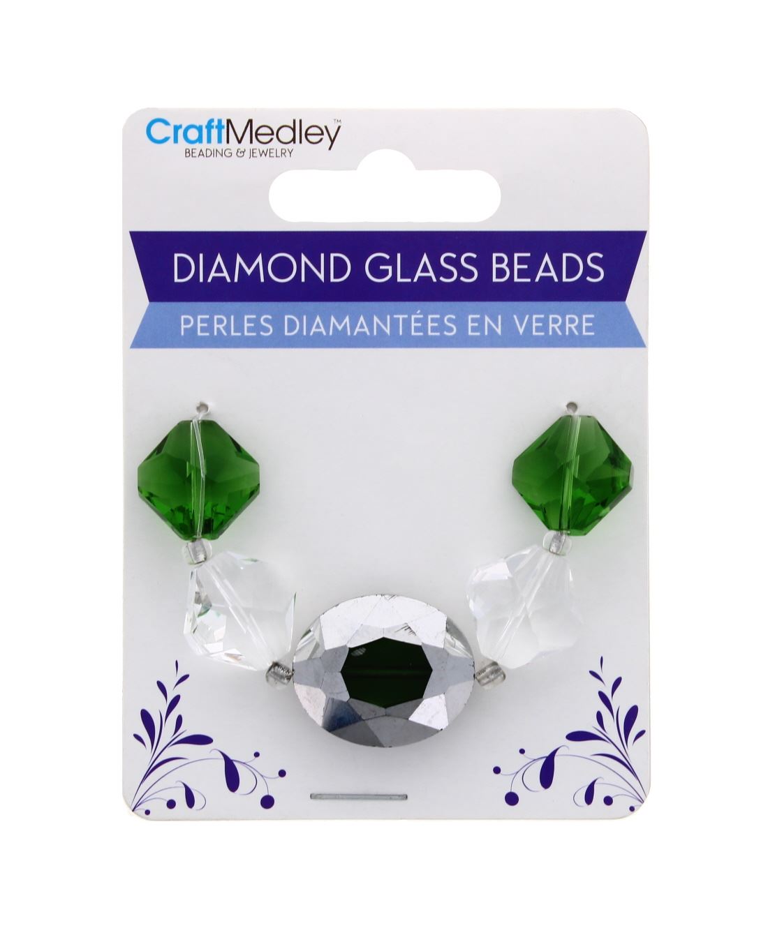 Deep emerald diamond glass beads perfect for adding richness and depth to any creation.