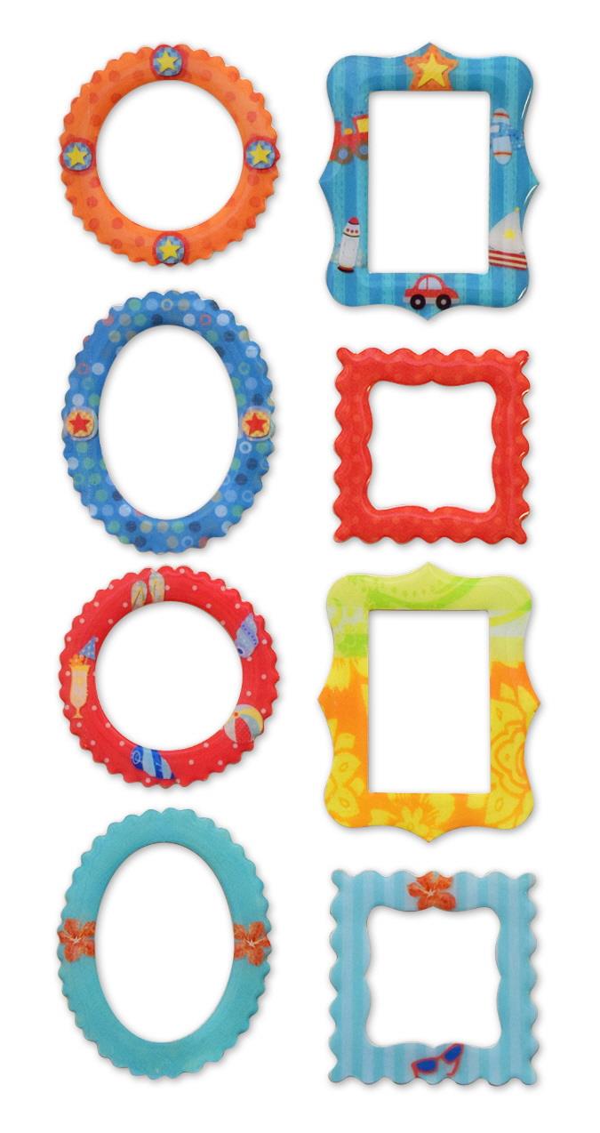 Assorted epoxy-coated frames in baby boy themes, perfect for scrapbooks and keepsake albums.