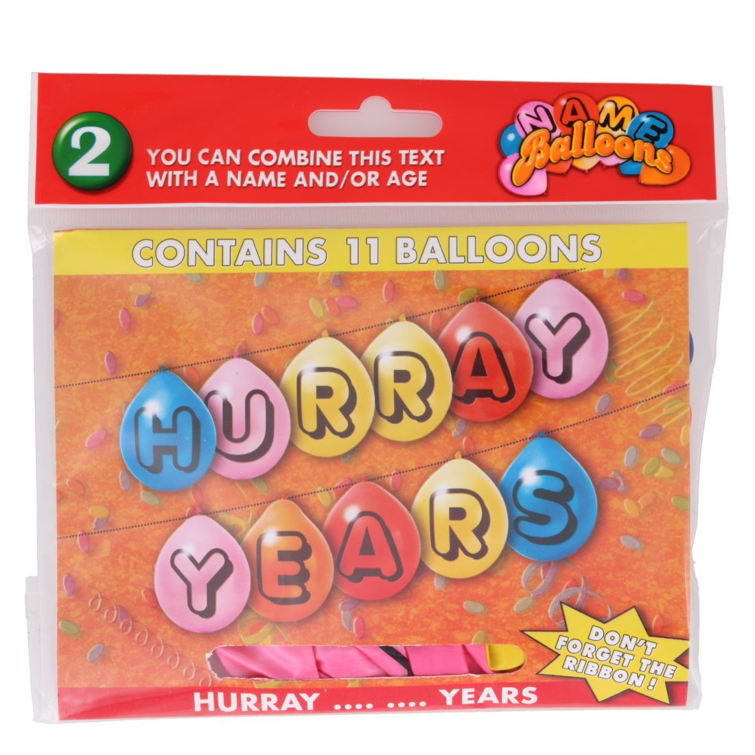 Mark a special birthday or anniversary with “HURRAY YEARS” balloons — add number balloons to complete the message.