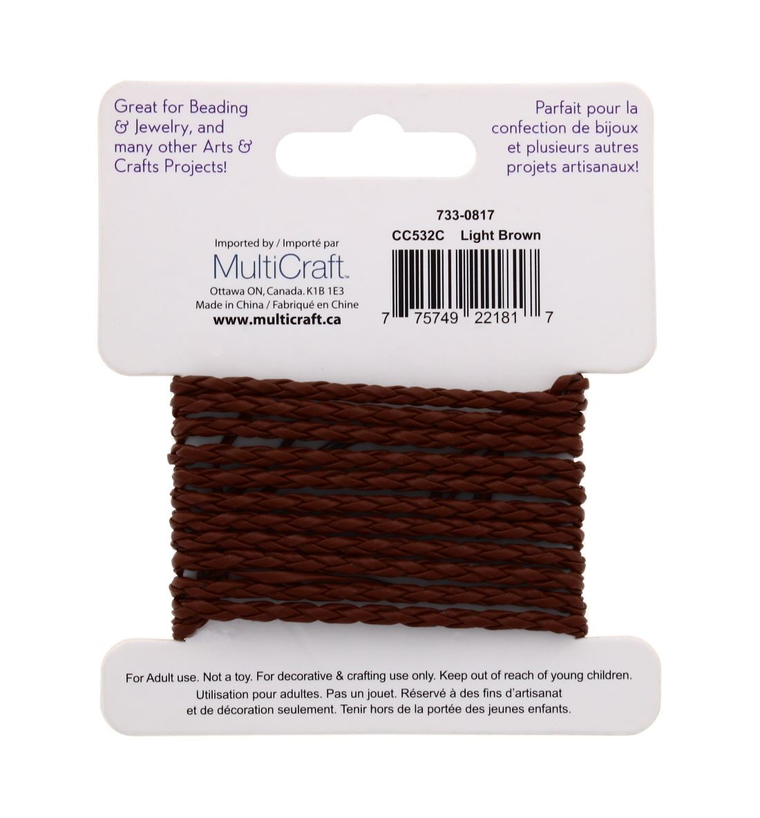 Durable light brown cord for jewellery-making, gift wrapping, and craft projects.