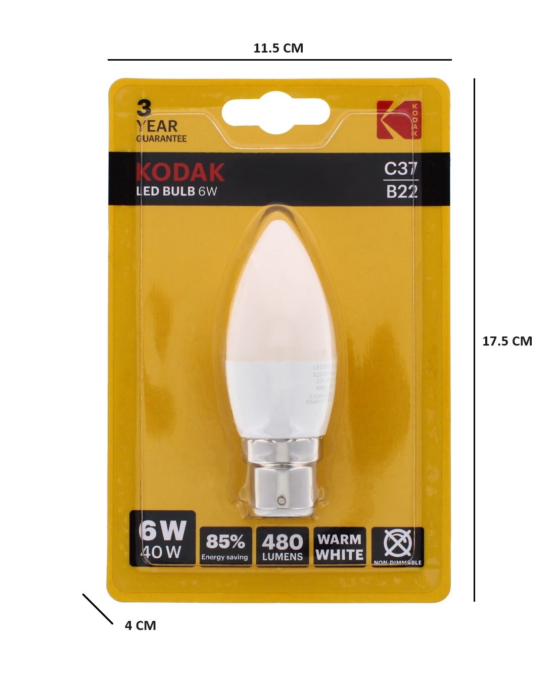 KODAK LED BULB CANDLE B22 BAYONET 6W WARM WHITE
