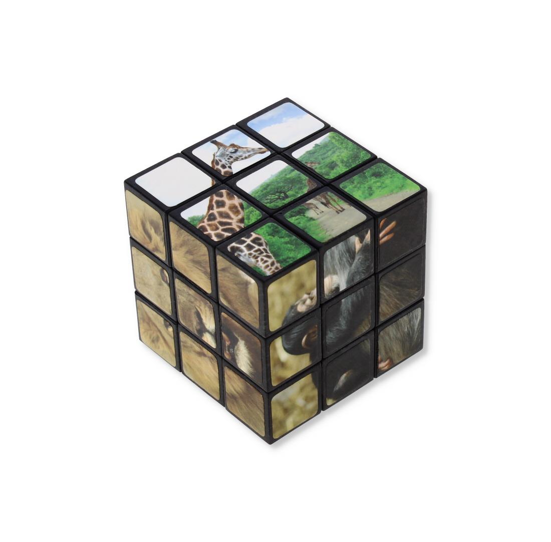 Brain-teasing magic cube puzzle featuring wild animal designs.