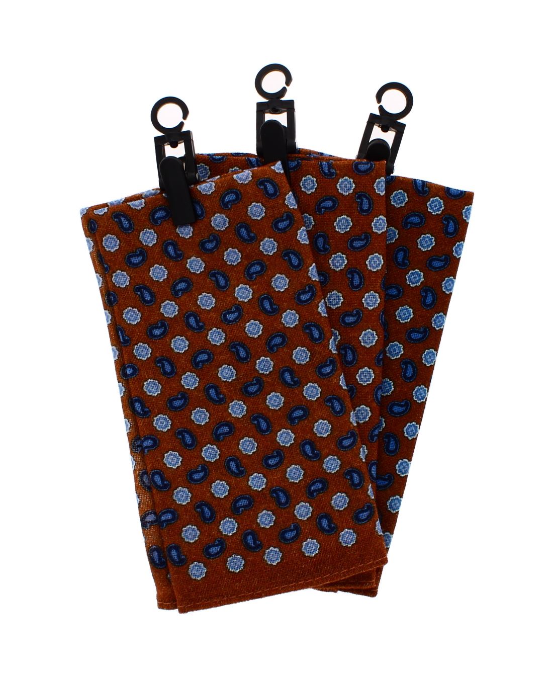 An elegant wool handkerchief in a brown shade with floral detailing. Perfect for adding texture and style to jackets and suits.