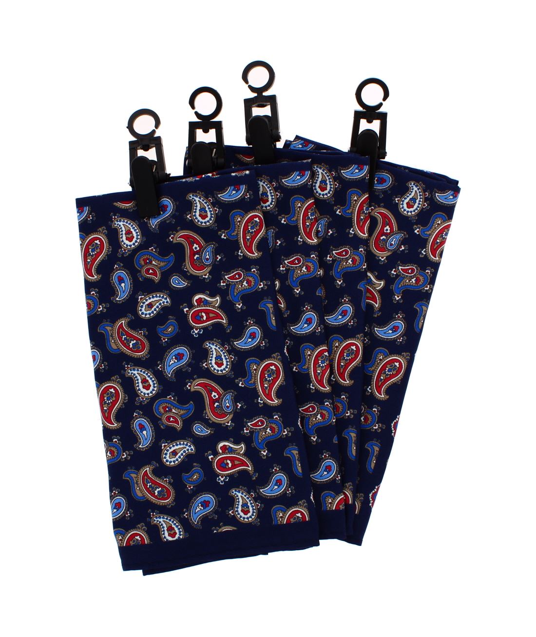 A luxurious silk handkerchief featuring a timeless blue paisley pattern. A stylish addition to any formal outfit.