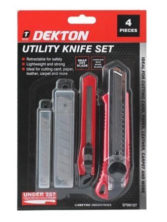 PACK OF 4 DEKTON UTILITY KNIFE SET RED