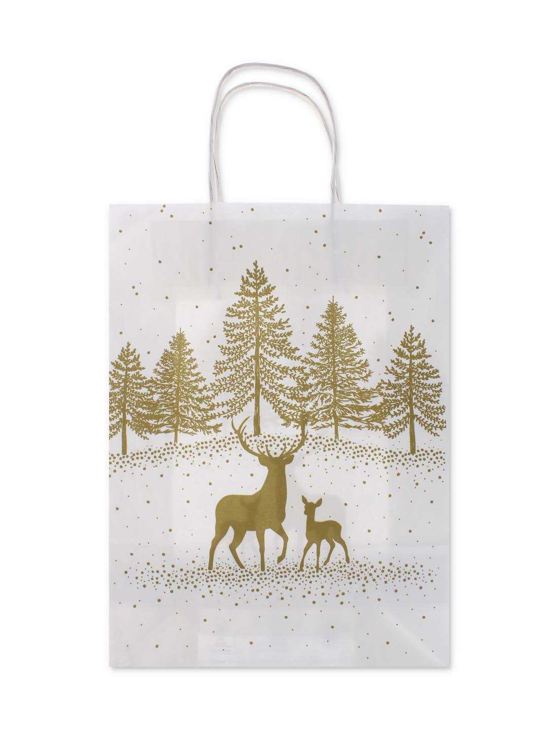 Celebrate the festive season in style with this large Christmas-themed paper gift bag. Perfect for wrapping presents of various sizes while adding a seasonal touch to your gifts.