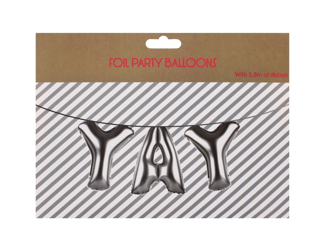 Foil balloon set spelling “YAY” to add excitement to any party.