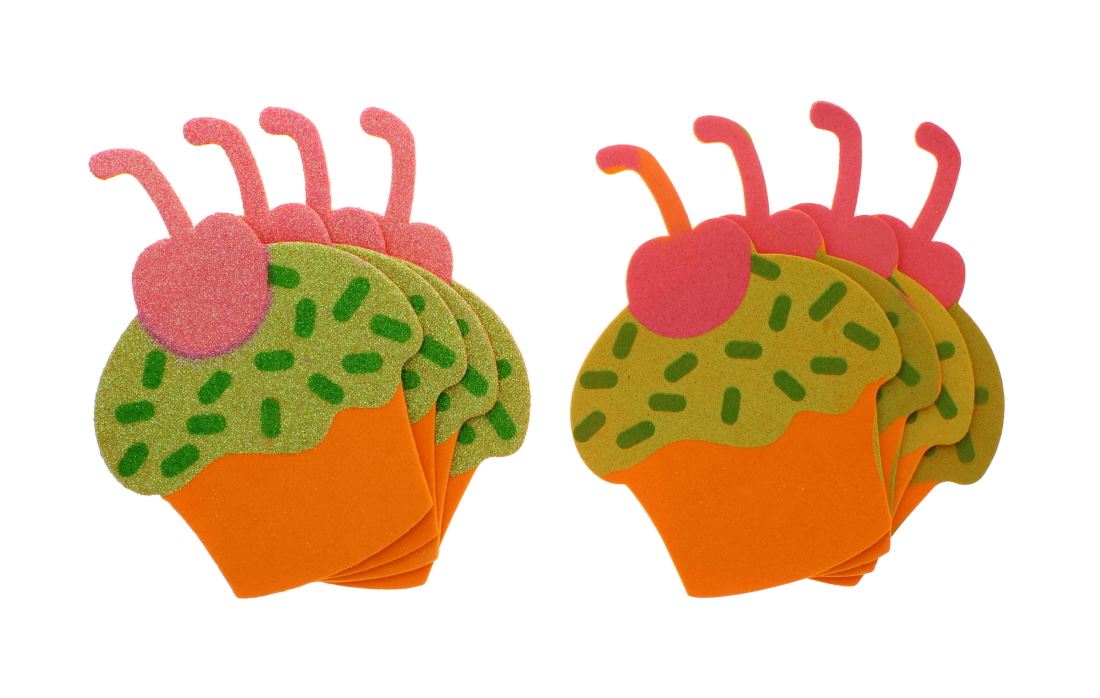 Soft foam cupcake shapes in pink cherry colour scheme for fun and easy kids’ crafts.