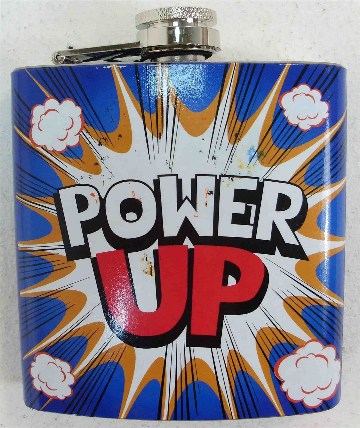 Recharge your spirits with this Power Up flask – fun, bold, and practical.