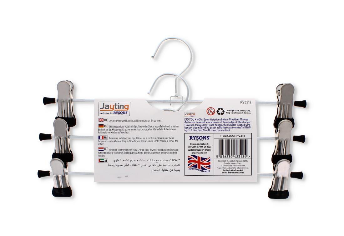 Keep trousers neatly organised with this pack of 3 durable metal hangers.