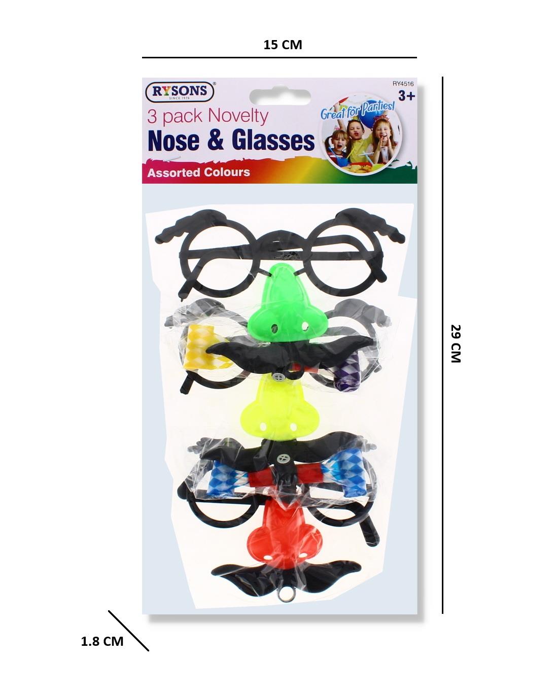 RYSONS 3PK NOVELTY NOSE & GLASSES