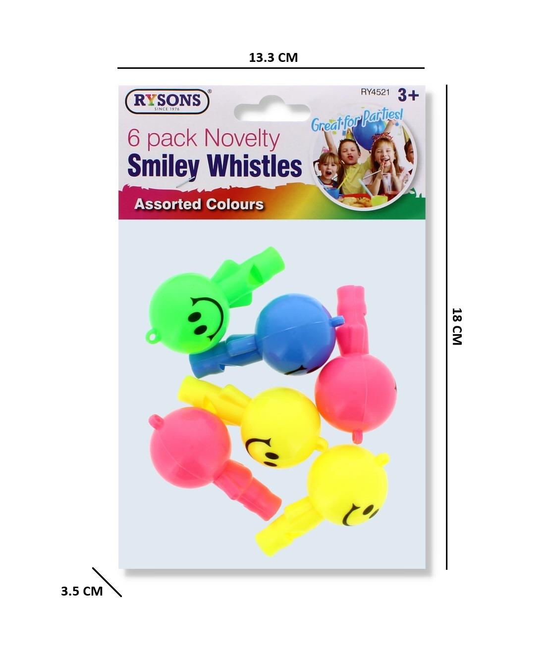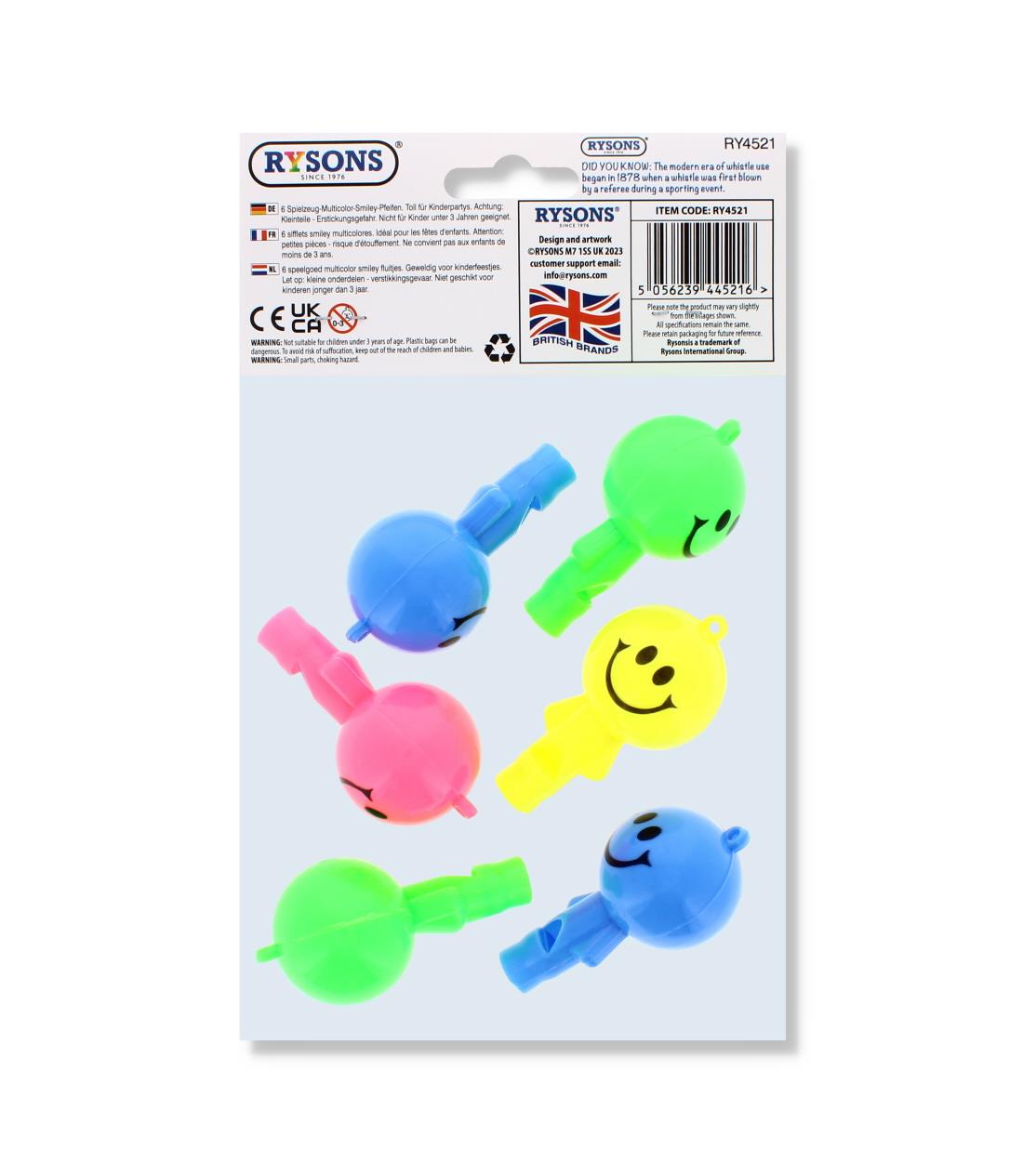 RYSONS 6PK NOVELTY SMILEY WHISTLES