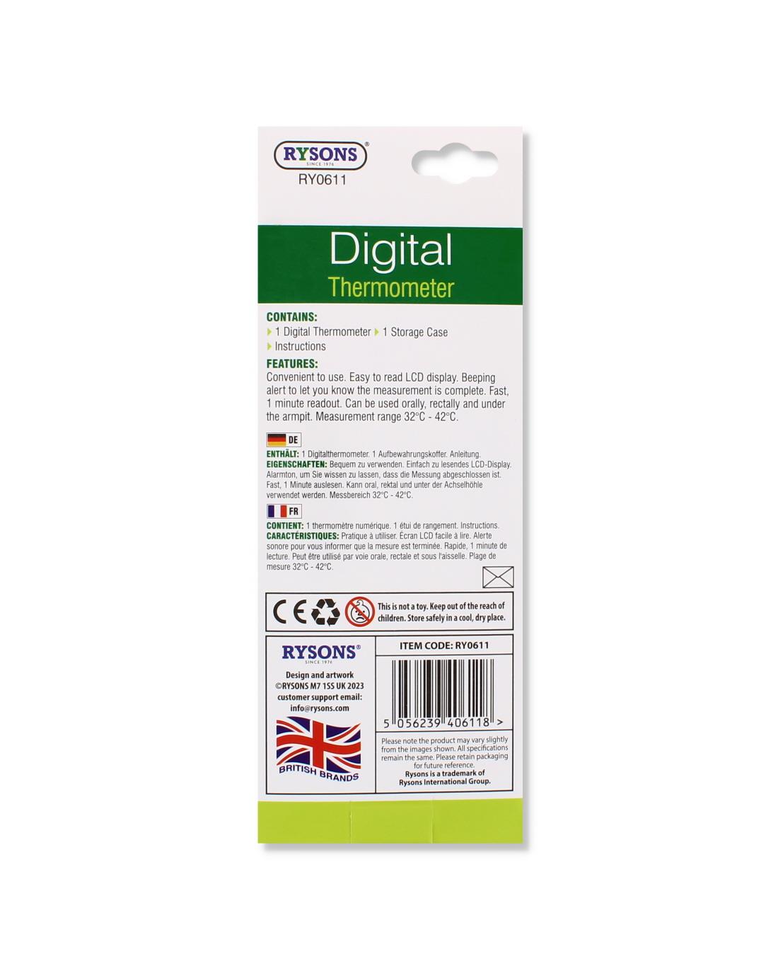 Check temperatures quickly and accurately with this Rysons digital thermometer.