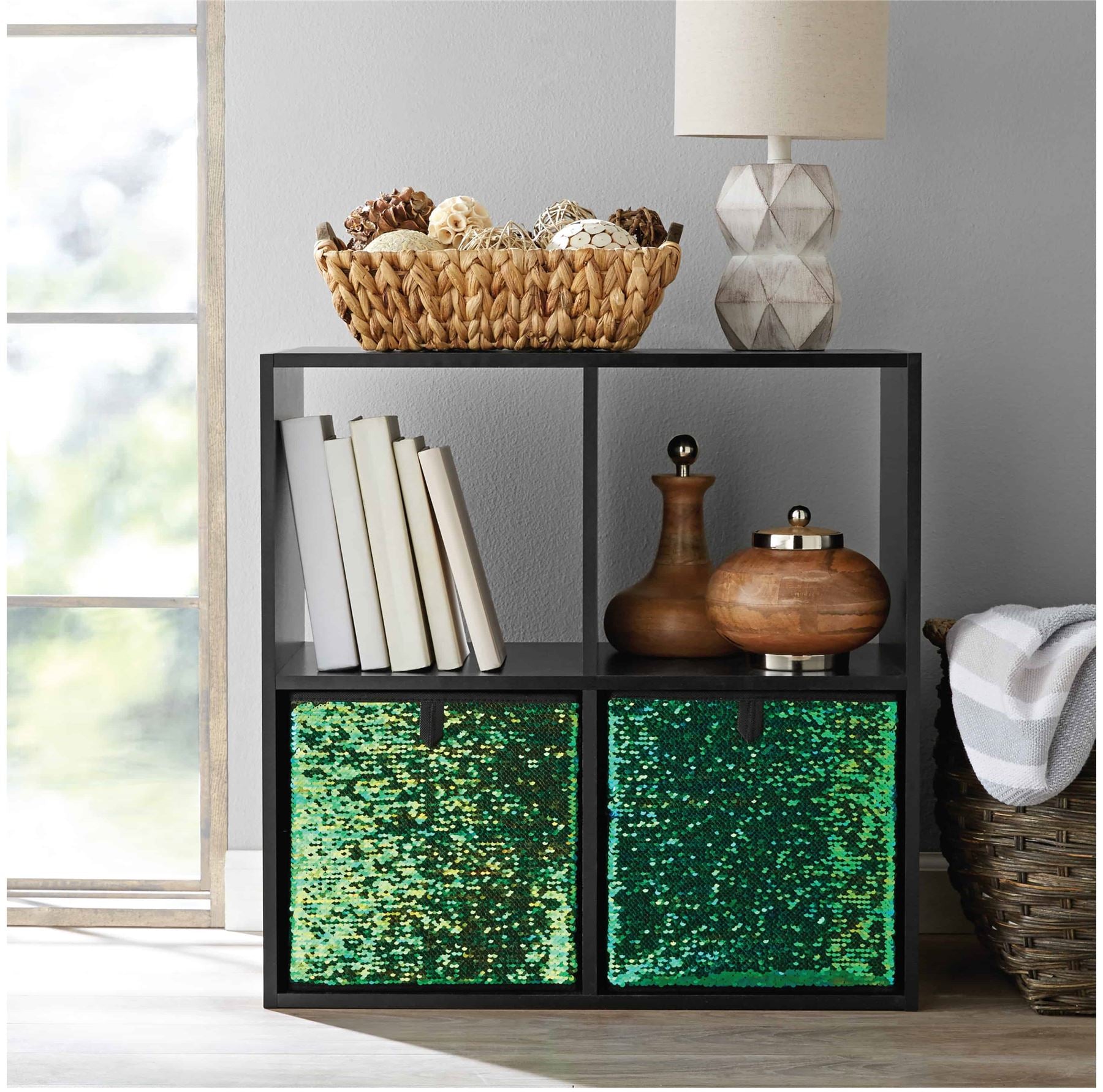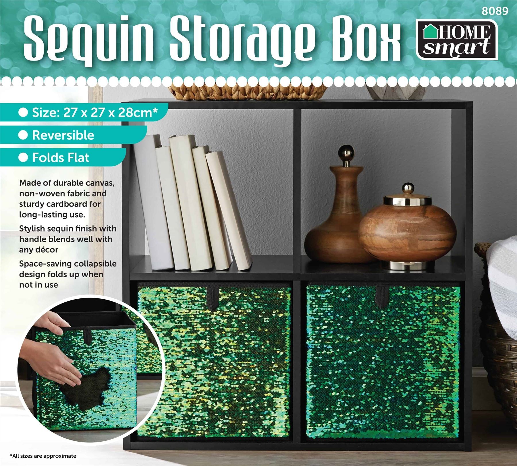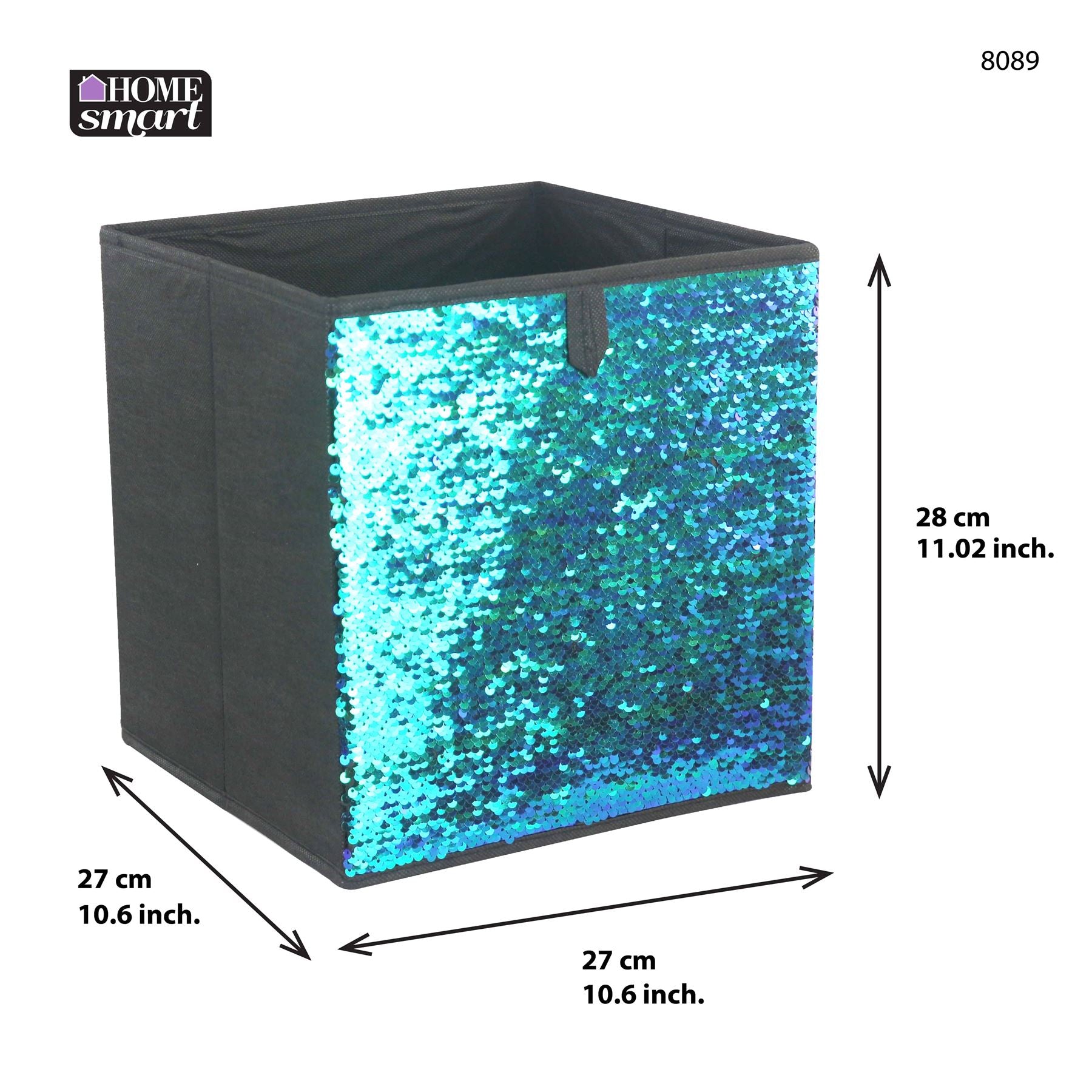 Add a touch of sparkle to your storage with this stylish teal sequin bin.